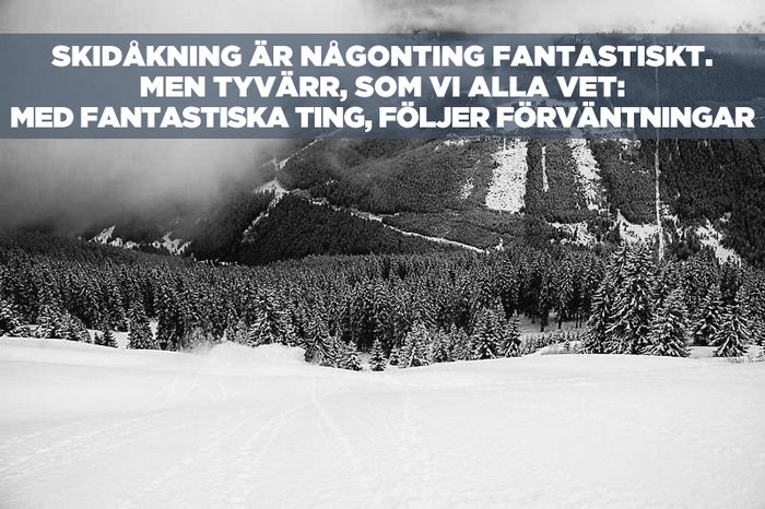 Men det finns saker värda att lida för. Saker som gör det värt att ta steget ut i verkligheten där örfilarna viner för en liten stund. Kliva utanför bubblan. Hägen Däz Jordgubb är en sådan sak. Skidåkning är en annan sådan sak. Skidåkning är någonting fantastiskt. Men tyvärr – som vi alla vet; med fantastiska ting följer förväntningar.