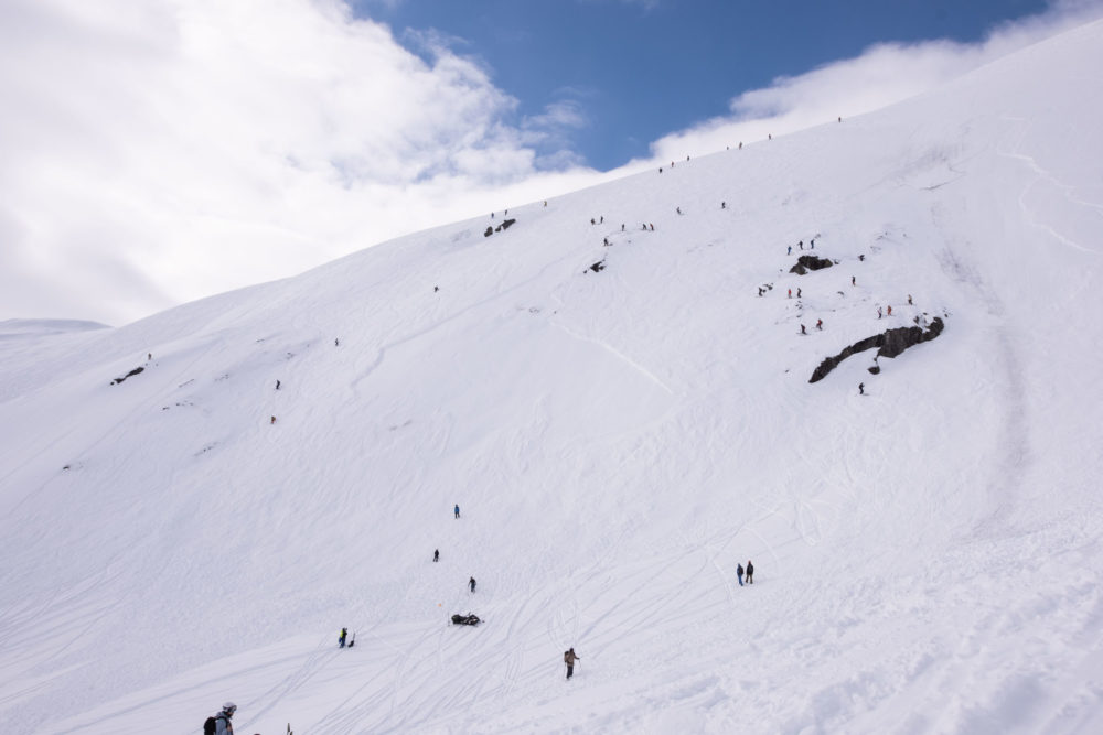 På snowboardsidan höll sig det flesta mot den mjukare snön på lookers left. Denna sidan hette för två år sedan ”lilla japan” men fick detta året heta ”lilla Kanada”. Mycket tack vare att det såg ut att vara helt underbar snö.