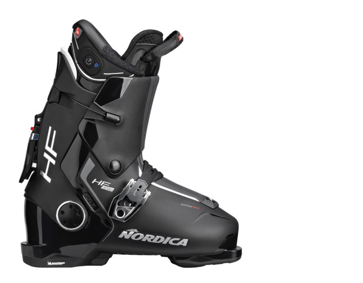 Om pjäxan: Detta är en klassisk bakistegs-pjäxa i modern tappning. Passar åkare som prioriterar komfort och enkelhet framför prestanda, exempelvis äldre personer och småbarnsföräldrar. Nordica HF kommer i fyra olika varianter, både för dam och herr, där HF Elite Heat är värstingen och har ett flex på 120 och en läst som mäter 102 millimeter, Michelin Gripwalk-sula och inbyggd värme som kan programmeras med hjälp av en app på telefonen. HF står för Hands Free och denna pjäxa är faktiskt möjlig att ta på sig utan att använda händerna. När spärren i bak knäpps upp så går det att öppna pjäxan hela 40 grader vilket ger en 35 procent större öppning i jämförelse med en traditionell pjäxa. Video om pjäxan ser du här, inspelad på ISPO-mässan i München i februari 2020.