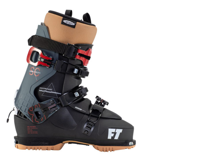 Om pjäxan: Sammy Carlson Pro Model, det säger det mesta. Det här är en pjäxa som är utrustad med tech-inserts och gåläge men som helt klart är skapad för att klara riktigt tuff åkning. Baserad på Full Tilts Ascendant Approach men skapad för ännu hårdare åkning utför, därmed också den relativt höga vikten i jämförelse med andra pjäxor i samma kategori. Formbart skal, 120 flex, 102 millimeter läst och GripWalk-sula. Innerskon ser annorlunda ut och är mer omslutande ovan pjäxkanten i jämförelse med traditionella pjäxor. Tre spännen och en strap som är enkel att släppa.