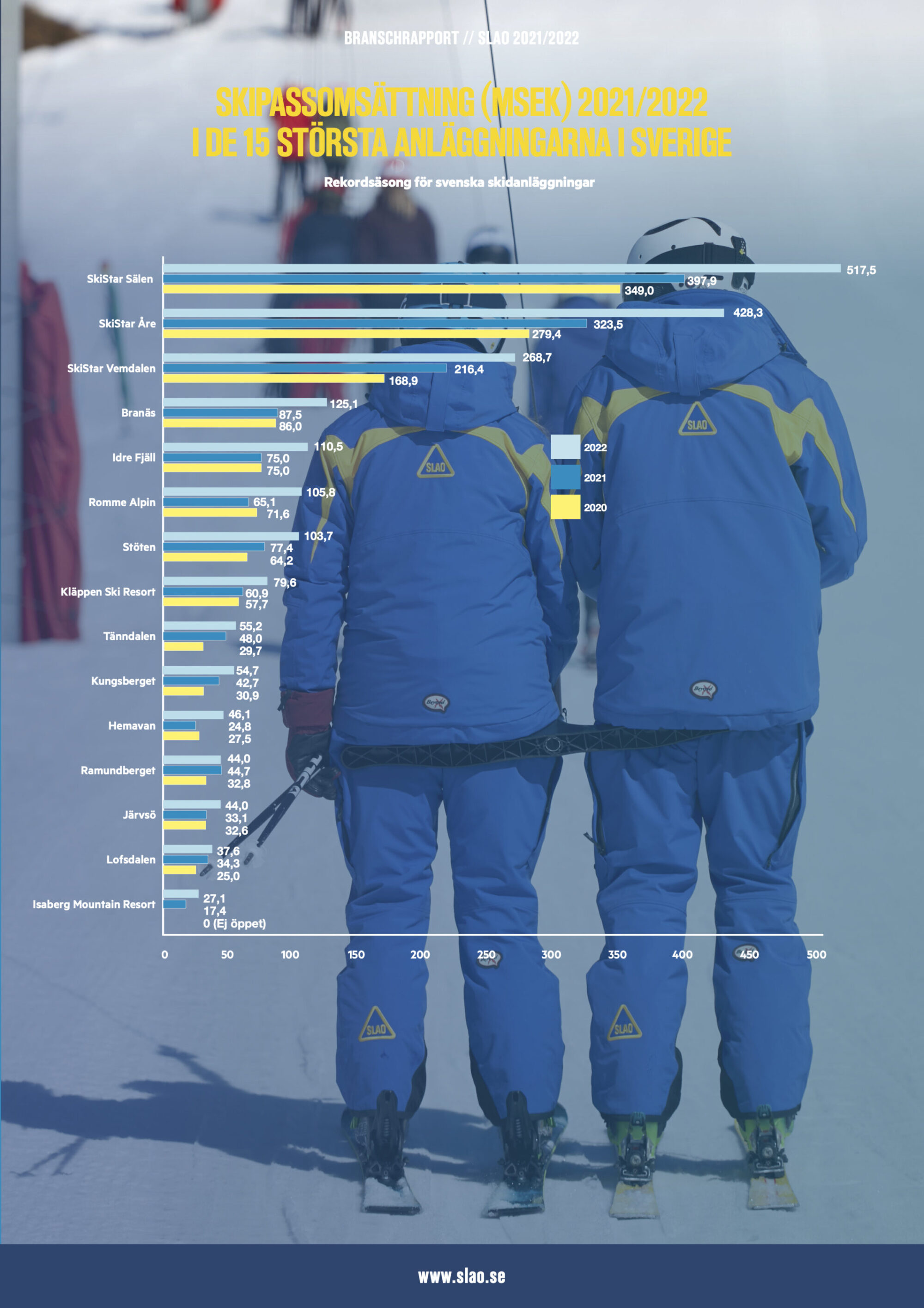 Listan gällande svensk skipassomsättning ser liknande ut som listan kring antal skiddagar men skiljer sig något åt eftersom man endast ser till omsättningen under säsongen 2021/2022 istället för tre år tillbaka.