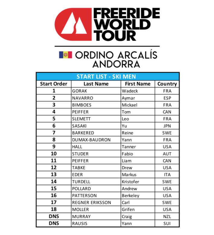 I skidor herr ligger Kristoffer Turdell tvåa totalt inför tävlingen i Andorra. Ettan Markus Eder från Italien har chansen att säkra totalsegern 2019 redan imorgon efter sin fenomenala säsong med vinst i både Hakuba och Kicking Horse, samt silver i Fieberbrunn. Är han bland de 6 första så är han världsmätare redan före tävlingen i Verbier.