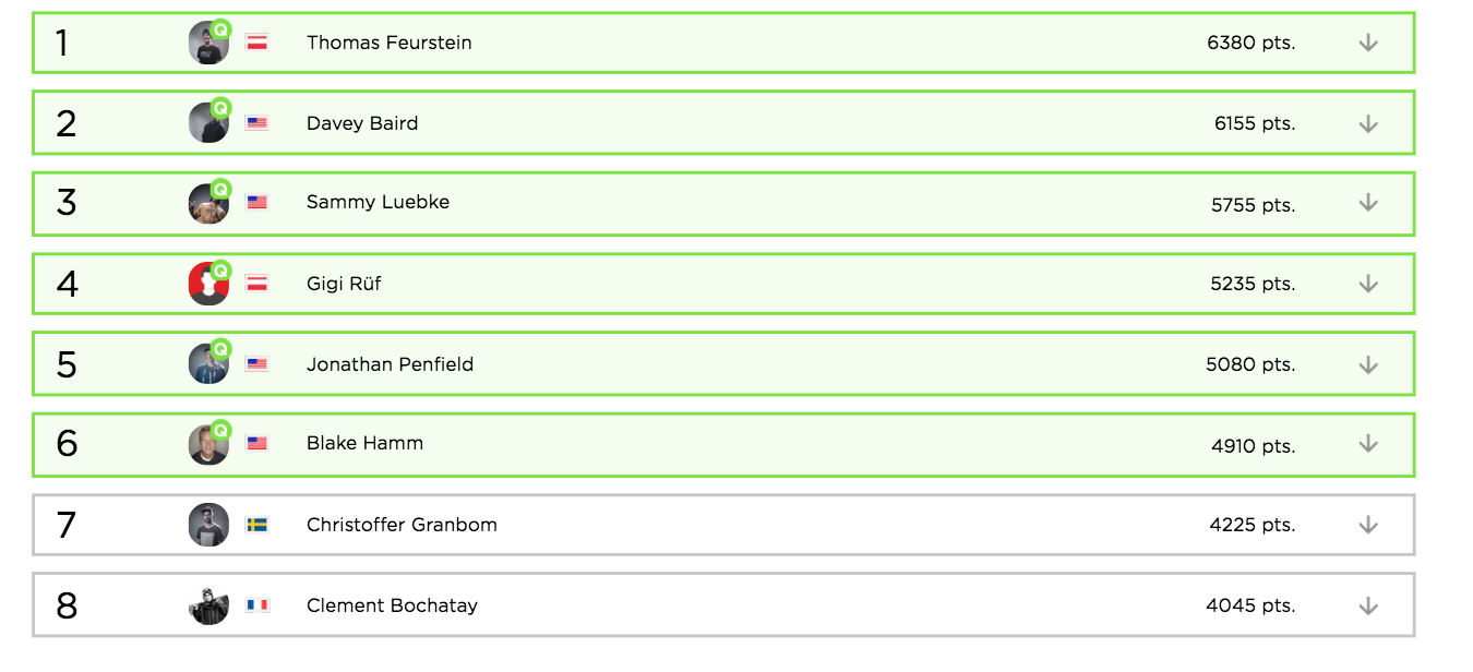 Och biljetterna till sista tävlingen i Verbier står också på spel i Fieberbrunn. Det är ”Crunch time” och sista möjligheten för åkarna att plocka poäng nog för att komma till Xtreme Verbier 2018 som är säsongens stora höjdpunkt. Det är tretton skidåkande män, sex skidåkande kvinnor, sex brädåkande män och fyra brädåkande kvinnor som får pröva lyckan i inofficiella friåknings-VM på Bec des Rosses i Verbier. Alla som kommer till Verbier är också direktkvalificerad till nästa års säsong av Freeride World Tour.