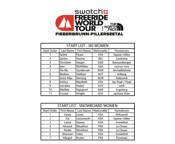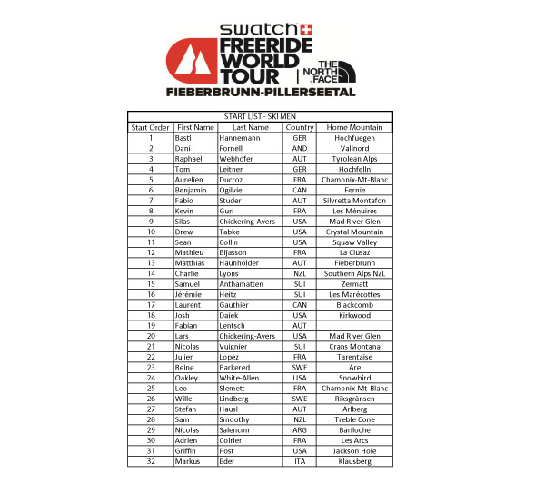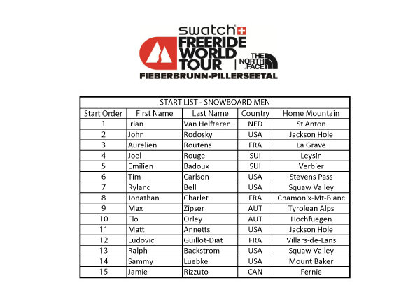 Startlistor Freeride World Tour Fieberbrunn