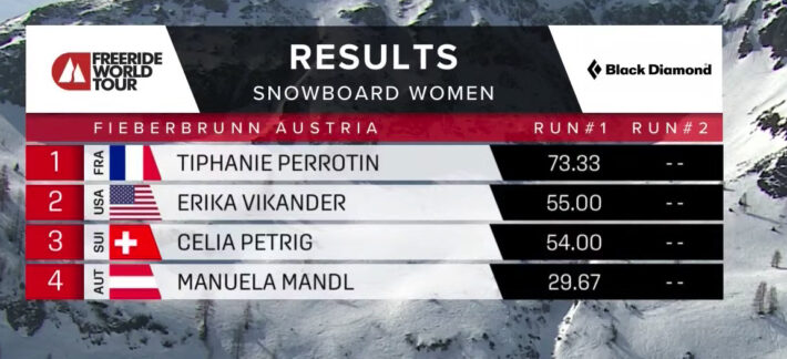 I Fieberbrunn är tävlingsformatet lite speciellt idag: alla åkare kör två åk. Det är bara det bästa åket som räknas. Damer skidor är först ut på andra åket, där första åkaren startar 11.20. Startfältet är numera decimerat efter Andorra, varför vi totalt ser 28 åkare i samtliga kategorier.