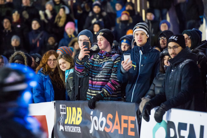 – Det har varit jättemycket folk och en suverän stämning här i dag, säger expertkommentatorn Jesper ”Jeppenator” Norén, som tillsammans med snowboard- och freeski-kommentator Bollen Valencia höll igång publiken och gav åkarna energi innan de tog fart från den 22 meter höga rampen.