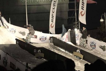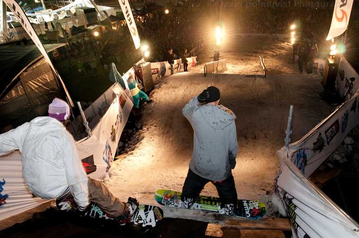 Klockan 18.00 var det dags för åkarna att börja köra järnet i finalen och fightas om pengarna och TTR-poängen. Några tusen åskådare var nu på plats för att se sina favoritsnowboardåkare och DJ Sid drog igång stämmningen. Åkarna drog på direkt och under den en timme långa finalen fick vi se trick som cab 360 switch nose press cab 360 out, cab 270 hardway pretzel out och bs 180 switch nosepress på down-flat-down-railet.