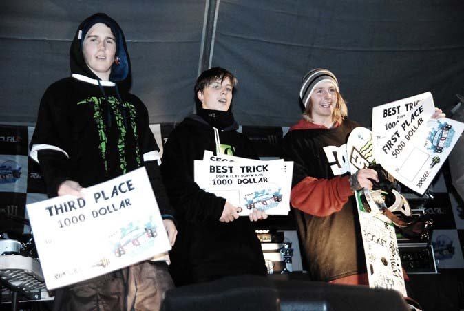 Till slut så stod följande åkare på pallen efter att ha imponerat mest på domarna som bestod av snowboardrävarna Mattias Nyberg, Tobbe Karlsson och Kalle Olsson: