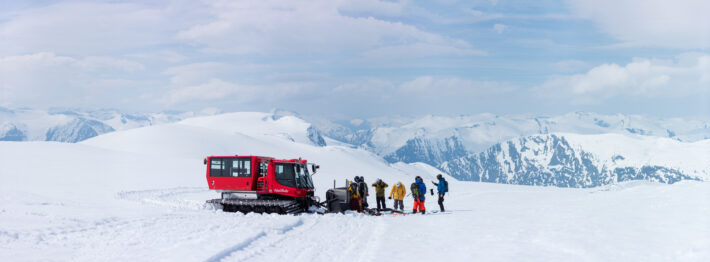 – Catski maskinen går så länge det finns snö på toppen. Priset är 700 kr per tur och då kommer du upp på nästan 1900 meter över havet och har en fallhöjd på 850-1200 meter beroende på vilken väg du väljer ned.