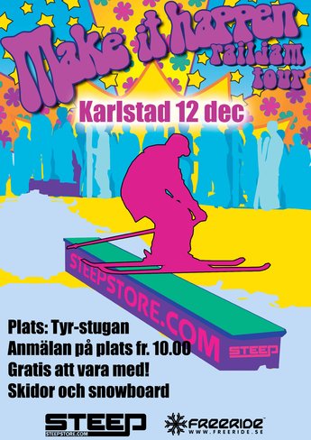 Det har nu blivit dags för det tredje stoppet i Make It Happen Railjam Tour 2009. Nu på lördag gäller det att ta sikte på Karlstad där stoppet körs. Man är tillbaka där Make It Happens andra stopp i historien kördes och det är vid Tyr, förbi Löfbergs Lila Arena, som är platsen för jamet.