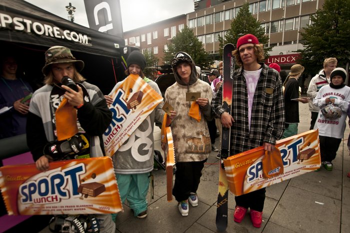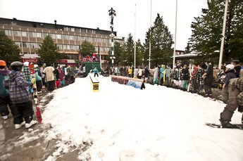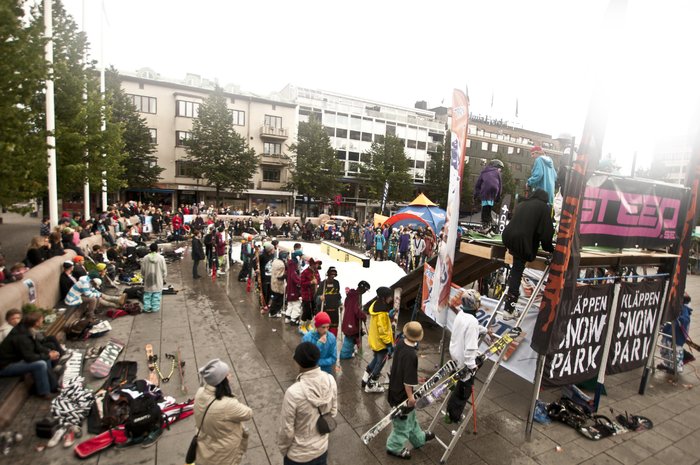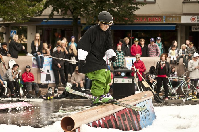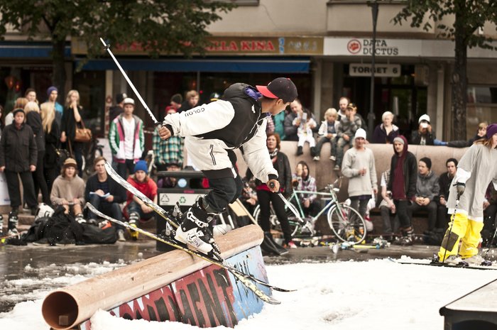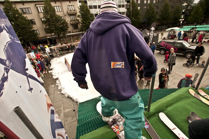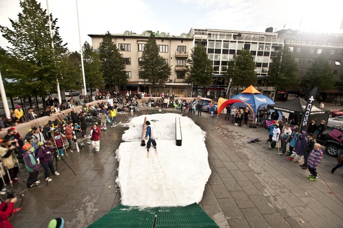 Dagen bjöd tyvärr inte på så mycket sol som vi hade beställt men inte heller något regn så vi var nöjda. Till skillnad från förra året kändes det dock som att vi hade det dubbla åkarantalet med uppskattningsvis 80-100 åkare som letat sig till torget i Skellefteå. Det är alltid grymt kul med mycket åkare och vi är väldigt glada att det letade sig så mycket folk som fick dela på skid- och snowboardglädjen för en dag.
