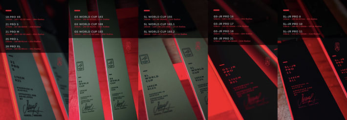 På hemsidan finns heller inga specifikationer kring skidorna, men på Van Deers instagram finns betydligt mer information att tillgå. Där finns nämligen en hel drös racinglagg komplett presenterade med specifikationer kring både mått och material.