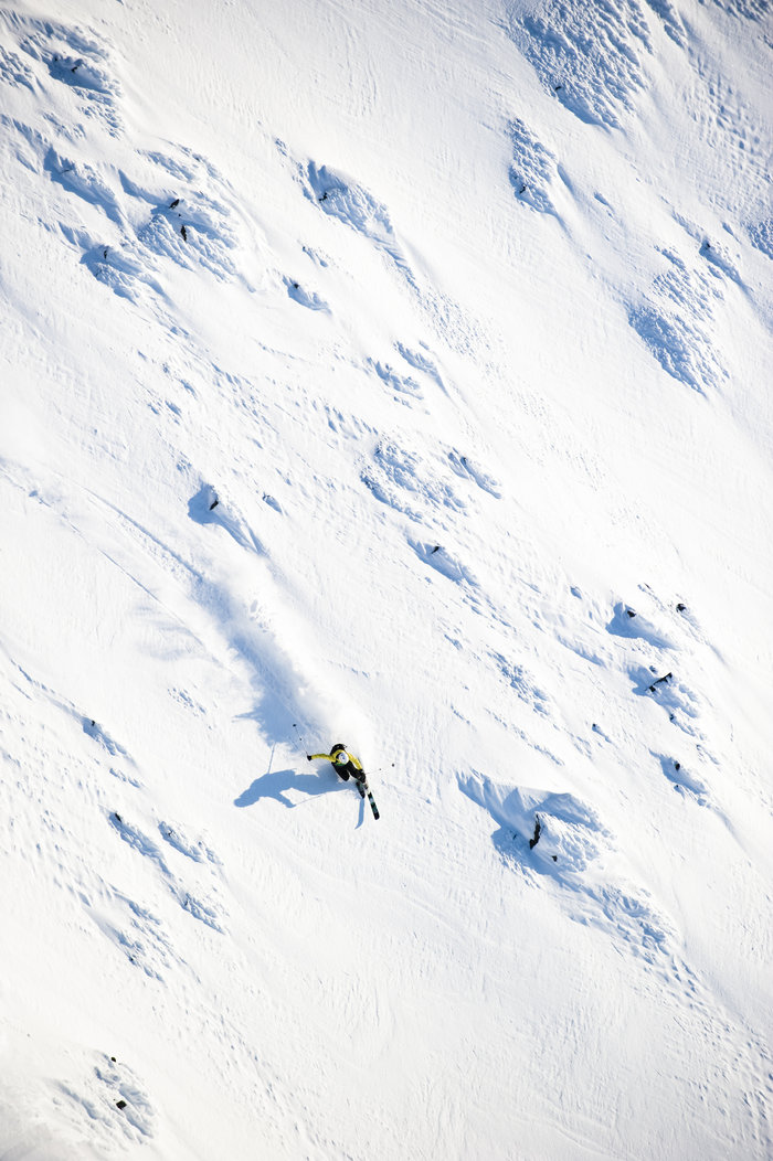 – Vi var i Argentina och där var ett gäng duktiga svenska åkare och jag kände några av dem. Förhållandena hade varit sådär men så fick vi snö och fint väder och alla skulle ta sig ut i terrängen. Jag såg en av svenskarna åka stort på ett brant fält, jag trodde att det kunde vara Tobias (redaktör Liljeroth på Åka Skidor, reds anm) och gick fram, men såg då två flätor sticka ur hjälmen och ett brett leende som inte var Tobias, säger Nacho.