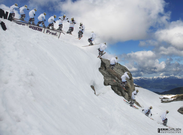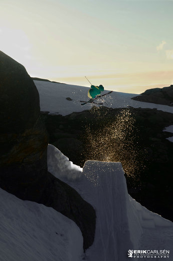 Ett par kvällar senare när vi står klara med kamerorna och bra väder, vid den stora handbyggda BC cornern, är alla grymt peppade. Jag funderar på vilka trick åkarna kan klara på hoppet. Det såg svårhoppat ut när vi testade eftersom det var en väldigt smal kick. Landningen är några meter lägre än kickern och dessutom i nästan 90 graders vinkel. Åkarna värmer upp med ett hopp var. Efter det blir de närmaste timmarna helt galna. Alla åkarna kastar sig ut i sina svåraste trick och i snurrar de aldrig försökt sig på innan. Lars Håkon försöker sig på unaty dubbel rodeo japan. Gaute Silseth går för en dubbel cork 1260 mute och 1080 tail. Niclas landar, efter några försök, en klockren sausage 900 och nästan en 1260 mute. Oskar tar en stor dubbel backflip. Frido landar en 1080 mute och Jens är ruskigt nära att landa en dubbel rodeo 900 några gånger. Trötta sitter vi alla i stugan på kvällen och njuter av konsten vi skapat.