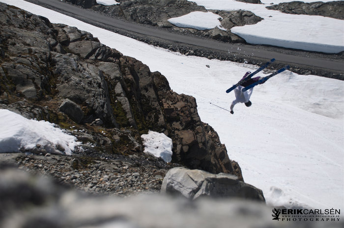 En av de sista dagarna kör vi en session på ett hopp som vi har valt att sätta på ett lite farligt ställe. Det var en liten platt kick där man hoppade över ett stenrös och landade i en brant landning så många av åkarna var skeptiska. Elvis och Lars Håkon fick göra upp med sten, sax, påse och det blev Elvis som blev först att åka.