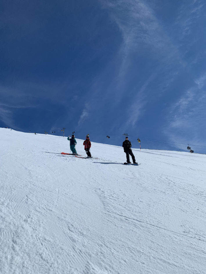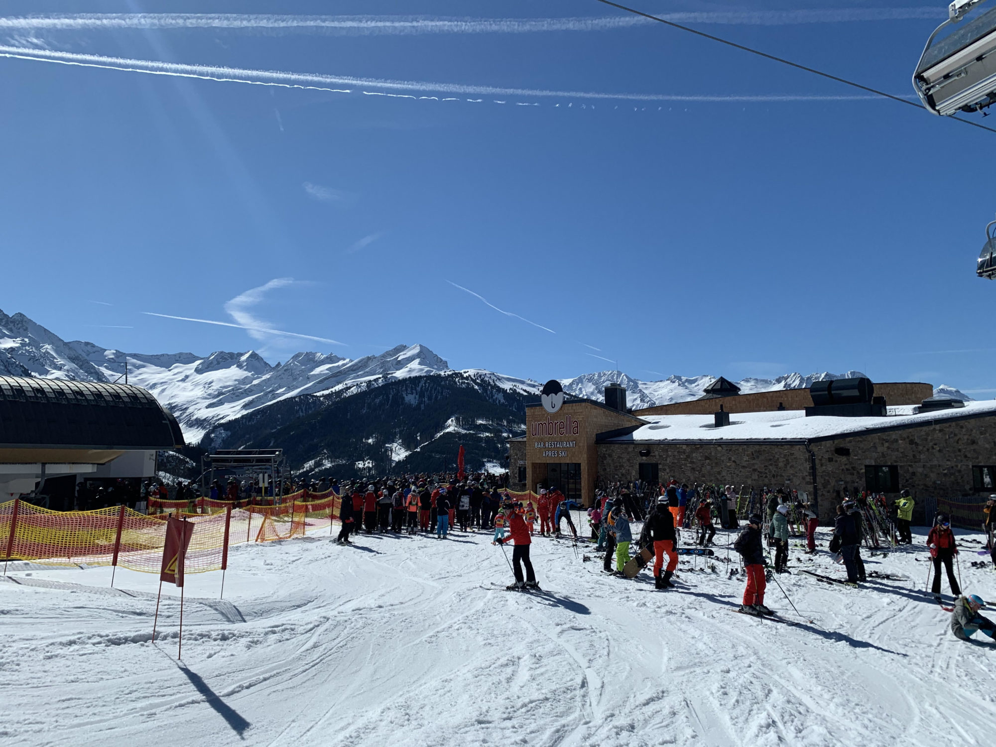 När vi rullade in i dalen imorse 06.30 stod det folk och köade till första liften? Så varken Corona eller en tidig morgonstund verkar skrämma folket här. Utöver det känns det som en vanlig dag på berget med folk i alla backar och omkring talar de om att det inte skiljer sig något från tidigare säsonger. Det skulle kunna vara så att folk suger sista musten ur backarna.