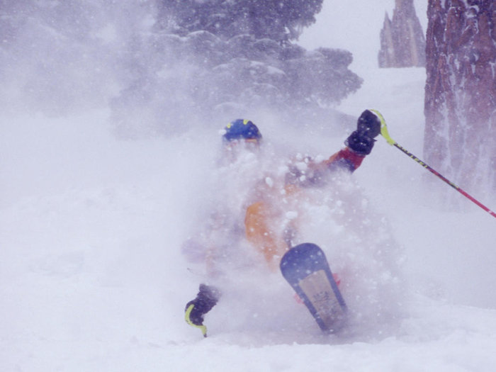 Det är monoskidor som jagar den första prototypen av snowboard i kultfilmen Apocalypse Snow från 1985. Synd för monoskidorna att de inte lyckades stoppa den nya brädan där man stod på snedden, för bara några år senare hade snowboarden tagit över och monoskidan förpassats till en begränsad grupp av entusiaster, mestadels i franska Chamonixdalen.