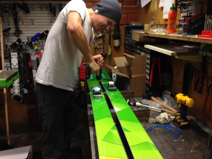 Skruva på bindningen men se upp för att dra för mycket så att du pajar ”gängar ur” skidan.