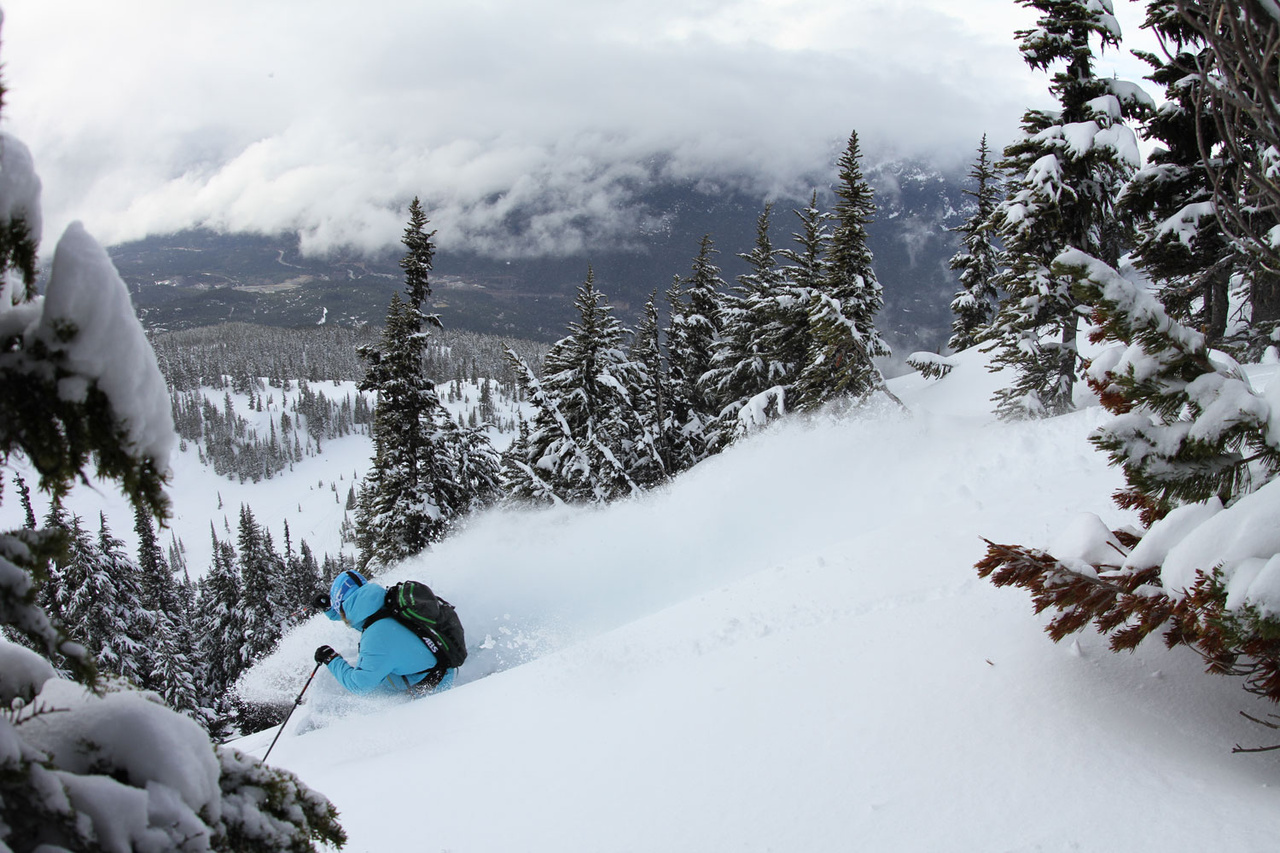 Bamsen Whistler behöver knappast någon presentation i sig. Det är ett nöjesfält. Det är fest. Det är lyx. Det är folk. Och det är ett berg som passar alla. Några av världens bästa parker, pister och offpiståkning fördelat på de två bergen Whistler – och Blackcombmountain. Väderleksrapporten antyder att vår granne i norr skall bjuda på kallare förhållanden än Mount Baker. Här blir vi i två dagar för att uppleva det bästa Kanada har att erbjuda. Eric har lovat oss några feta helikopter åk i området, men när vi kollar upp på himlen förstår vi att det kommer bli tight att få upp någon heli i dimman. Men vi behöver inte vara bittra länge. Gondolen ekar av omanliga glädjetjut och höga femmor när vi märker hur dimman innehåller massa nysnö som ligger och väntar under oss.