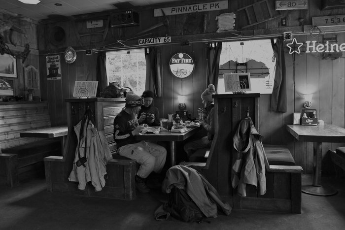 Vi har lyckats tajma in ett tjugofem centimeter dump kallsnö, vilket känns smått orealistiskt så här sent på säsongen. Resans fotograf Petter är en nyfiken tonåring i vuxenkropp och har varit här tretton gånger tidigare under sin tid som tränare för svenska snowboardlandslaget på vid sekelskiftettalet. Han har med andra ord dödskoll på de bägge bergen, och guidar oss med galnare pepp och entusiasm än en femåring med gratis åkband på Disneyworld.