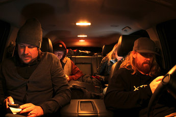 Under lunchen medan vi andra sitter och kämpar i oss varsin gigantisk nachotallrik, blir Eric fast i baren bland några lokala skidåkare som hämtar andan över en Budweiser. Eric minglar sig alltid fram som en socialt understimulerad teddybjörn, och nu liksom så många gånger förr, utmynnar det i ett spännande möte med en galen amerikan.
