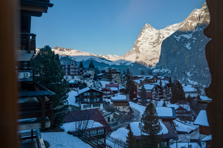 Bo: Hotel Eiger som är byns enda 4-stjärniga hotell eller på Hotel Alpenruh (där vi bodde) som bokstavligen ligger ett snöbollskast från kabinbanan och med en fantastisk utsikt.
