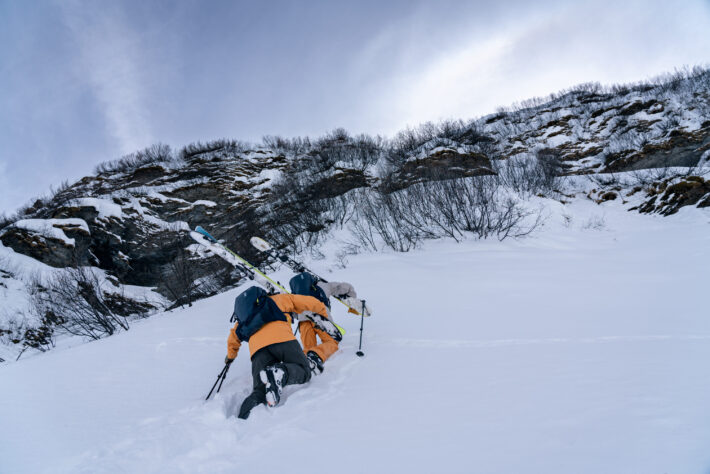 Förutom bröderna Lundstam så har även klent med snöfall följt mig på mina skidresor de senaste åren – och så även denna gång. Det har inte snöat mycket den senaste månaden och det är spår – överallt. Ett område som detta måste såklart fortfarande ha kallsnö någonstans, men vart? Som av snögudens vilja har vi den lokala guiden, Freddy, inbokad. Och det skulle visa sig vara den perfekta blodhunden för kall snö i området.