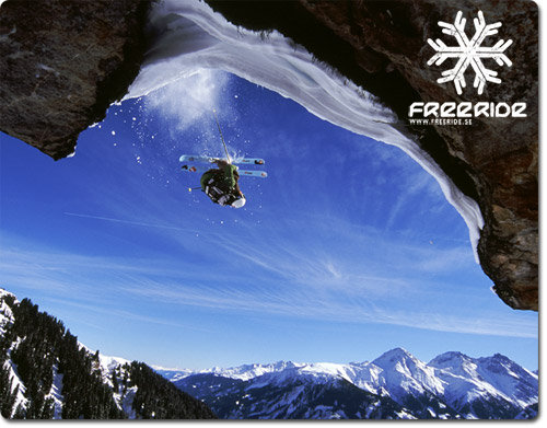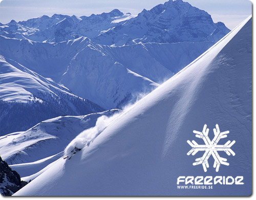 Freerides musmattor finns i två motiv; ”Puderfrossa” och ”Back country jibb”. Mattorna är rektangulära och i standardstorlek med en hård, musvänlig yta. Priset är 35 kronor/styck.