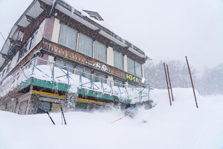 Men skam den som ger sig. Det japanska guldet fullständigt vräker ned (ibland sidledes beroende på vindriktning) och med denna mängd är även mindre sluttningar och pisten makalöst roligt. Tack vare att det lokala vädret inspirerats av svensk midsommar i fjällen är liftköerna här uppe i den övre zonen lika med noll. De första och enda japanska jibbers som vi ser har fullt upp med att bokstavligen gräva fram parken. Hela dagen spenderas med att varva lift “E” och hitta nya svängar bland skogen. Varje gång sneglar vi upp mot den helt orörda pisten “E2” och drömmer om andra tider när liften är öppen. Precis som i Onsen och Kanko, så kräver denna enorma mängd snö sin lutning och Suginohara lider av samma topografiska dilemma. Men det är ändå fascinerande på något sätt, det här med skidåkning och lössnö. Även om det inte är Instagram-värdigt brant så ger ett par skidor och 50 centimeter nysnö glädje som är svårfunnen på andra platser i livet. När dagen beger sig mot sitt slut så glider vi ned till gondolens dalstation och unnar oss en gedigen hamburgare i den lokala cafeterian/skidshop, där du absolut inte får missa inte att plocka upp ett exemplar av det legendariska skidmagasinet, Ski Club.