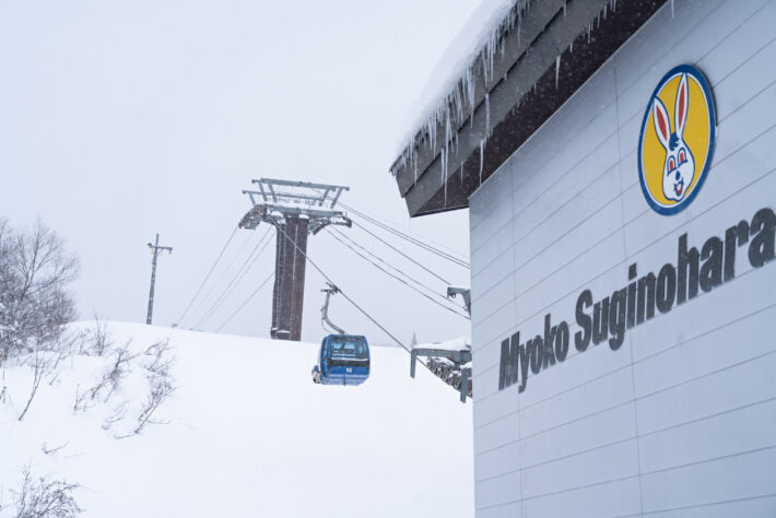 Vid Mount Myōkōs södra fot ligger systemet, Suginohara. Ett någorlunda litet system med fem liftar och områdets enda gondol. Även om Suginohara lackar efter i storlek så levererar det i möjligheter för klassisk skogsskidåkning och längre turer, japanskt sett, om du är villig att använda dina stighudar. Vårt besök här kunde varken bli bättre men samtidigt bli paradoxalt avsevärt bättre. Dagen börjar med att transferbussen åker ifrån oss på metern och nästa är inställt på grund av snö, vilket gör väntetiden en timme extra. Men som internationella skid-affärsmän måste vi se värdet av de första svängarna, särskilt när det snöar i den mängd som dagen erbjuder. Efter en snabb färd med taxi, business style, har vi inhandlat ett dagskort för 6000 yen, cirka 450 kronor och står i gondolen upp.