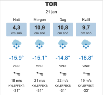 Vindarna väntas bli hårda kring 20m/s, alltid ett varningstecken vad gäller lavinfaran.