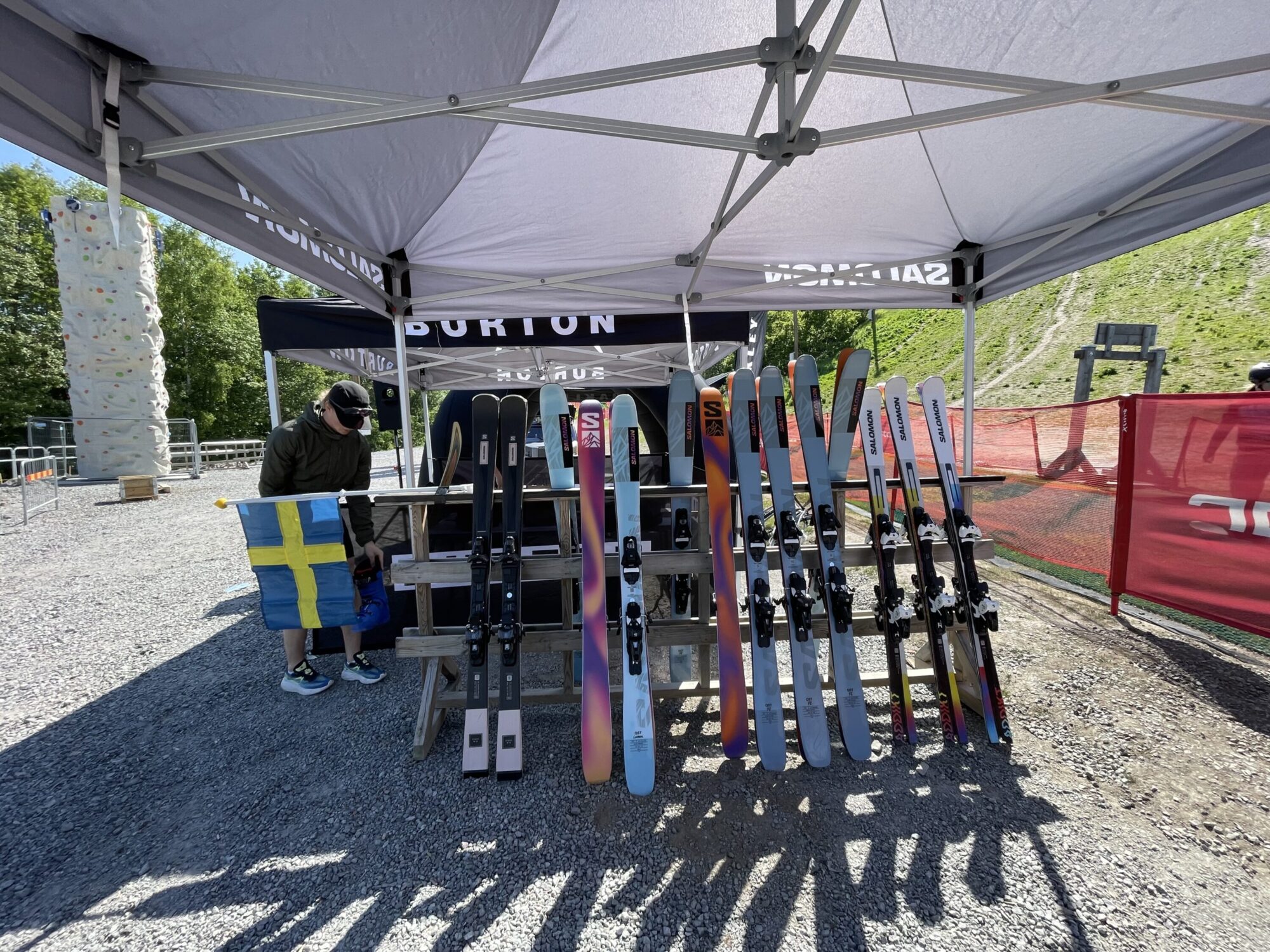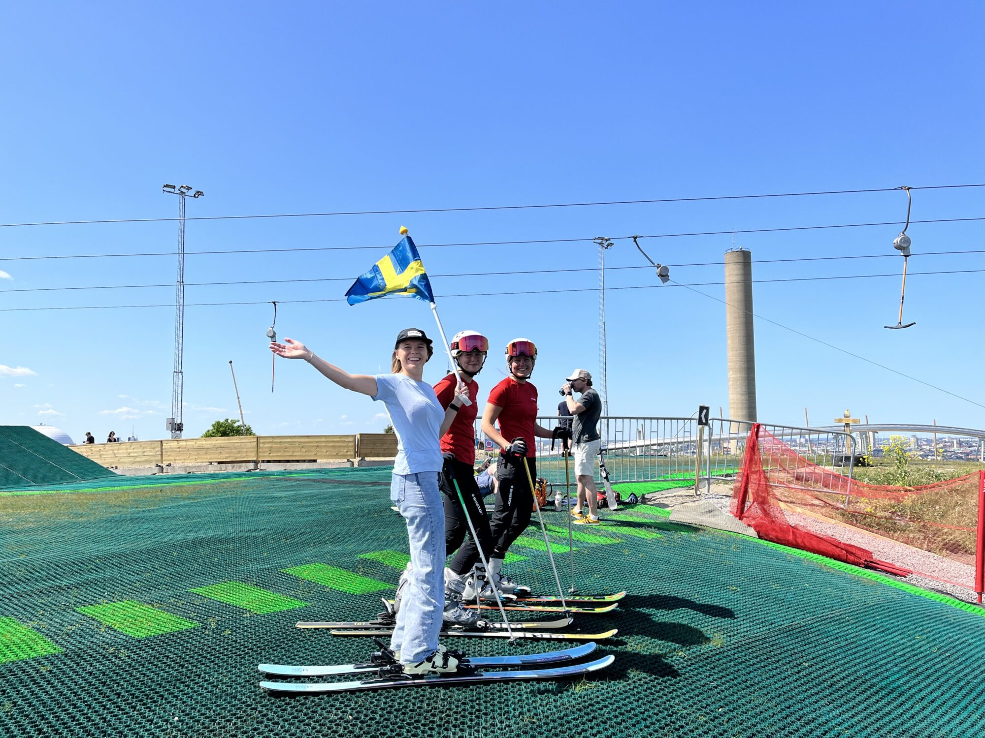 Svenska nationaldagen firades denna gång på en ovanlig men likväl spännande plats – Hammarbybacken. Tillsammans med några andra stockholmare tillbringade vi dagen i solskenet, komplett med skidtest, en railtävling och några insikter om att förbereda skidornas belag för åkning på plastmatta.