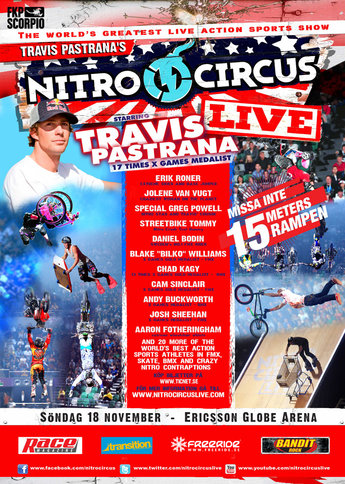 Nitro Circus Live är en två och en halv timme spektakulär helkoreograferad actionsport- show som headlinas av en världens största action sport-stjärna, Travis Pastrana. Varje föreställning kombinerar de största och bästa Freestyle Motocross (FMX)- stuntsen med vansinniga BMX- och skateboarduppvisningar, liksom att den berömda Nitro Circus-crewet utför häpnadsväckande trick och konster på en mängd galna fordon som släpps nedför den 15 meter höga Nitro Gigant-A-Rampen.