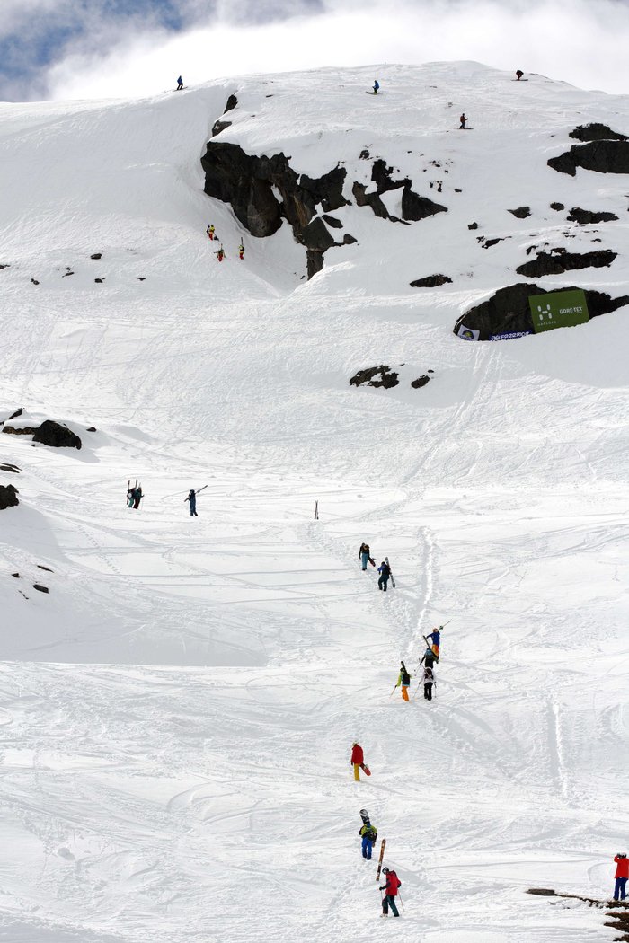Snowboardherrarna som safade rätt bra igår gick bananas på Insteget idag. Både regerande mästaren Tomas Johansson och rutinerade Björn Lindgren bjöd på bra ladd hela vägen och kryddade det med varsin perfekt backflip. Och tvåan inför dagen, Niklas Hollsten, var först ut på högerspåret där han gick riktigt stort på Äventyrsklippan. 43-årige ledaren Stefan Östling ville inte vara sämre och svarade med att dra på en grande 360 på Ögat. Björn Lindgrens 7,44 poäng var dagens högsta i snowboardklassen och legenden har därmed gått upp i ledningen före Tomas Johansson inför sista dagens tävlande.
