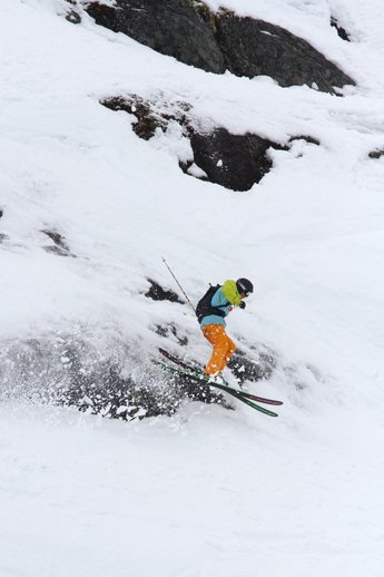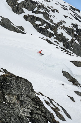 Även Joakim Johansson droppade riktigt stort på Äventyrsklippan men han lyckades inte riktigt hålla ihop det i landningen. Roligast av alla såg annars Jonas Karhumaa och Niklas Borg ut att ha det. De lekte ner för berget och även om de inte körde störst var det äkta skidglädje som levererades.