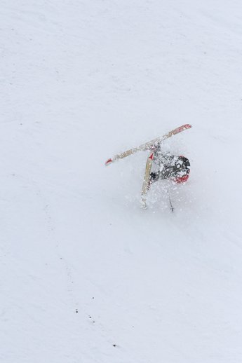 Det var tydligt att åkarna längre ner i herralpina resultatlistan var sugna på att käka placeringar för de fläskade på bra ner för berget, men i de flesta fall ledde det till just fall. Under en period var det standard med backflip ut över Ögat, lika ofta slutade det dessvärre med krascher.