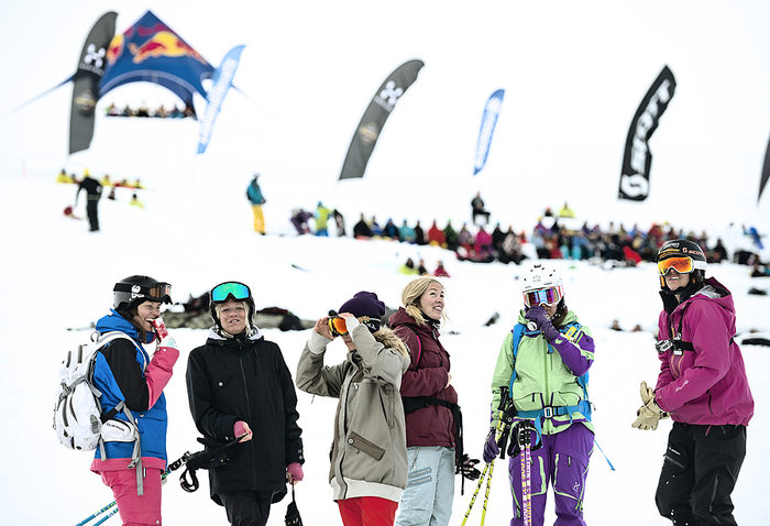 Även de alpina tjejerna laddade på bra den första finaldagen. Nästan alla valde att köra på Ögat, med varierande resultat. Efter flera krascher klev Lotten Rapp in och blev den första tjejen att sätta Ögat. Ett i övrigt stabilt och aggressivt åk av Lotten gjorde att hon roffade åt sig dagens tredje högsta domarpoäng bland de alpina damerna. De enda som rådde på Lotten idag var Filippa Ring (etta idag) som behöll samma höga nivå som igår och gårdagens sensation Karin Stöckel (tvåa idag) som stod för ännu ett dragit åk. Det är också de tre som ligger i topp inför finalen imorgon, Karin är etta, Filippa tvåa och Lotten trea.