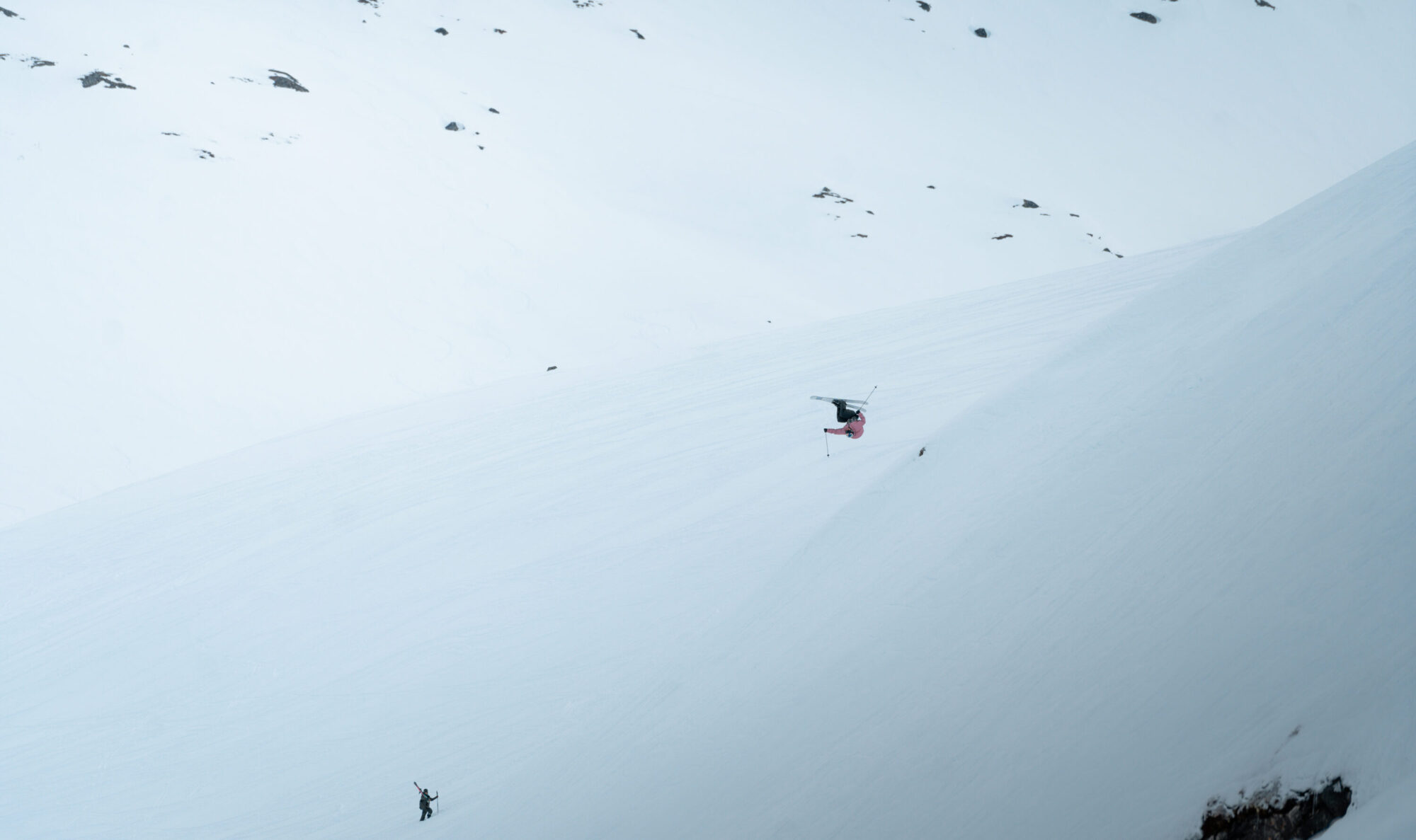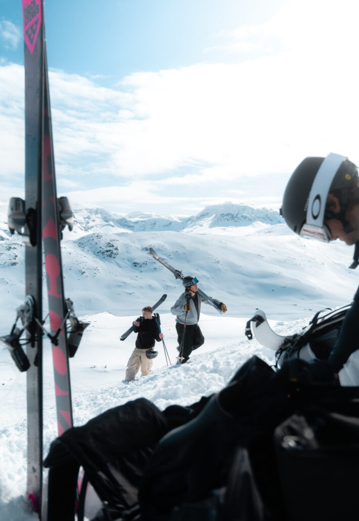 Värmen i början av dagen är påtaglig, snön är mjuk och grepping och det är så pass stora mängder snö på facet att det är svårt att urskilja några riktiga features. Kvalklippan är aningen blottad, men inte mycket annat. Det råder ingen tvivel om att åkarnas kreativitet sätts på en intressant prövning en dag som denna.