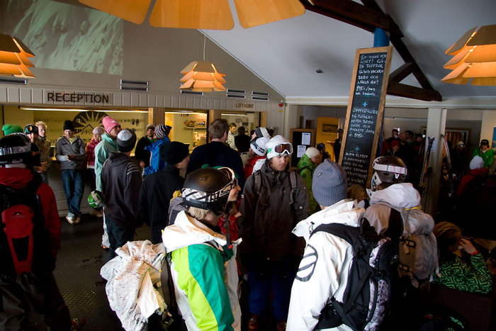 I morse var det åter igen dags för stort åkarmöte med information om dagens tävlingsschema. Tävlingsledningen meddelade att besked dröjer till klockan två i eftermiddag. Snöblåsten håller envist i sig men rapporter säger att det är blå himmel vid norska kusten och att finare väder är på väg till Gränsen senare på eftermiddagen. Många här uppe tror på att kvalet kommer att köras senare i kväll.