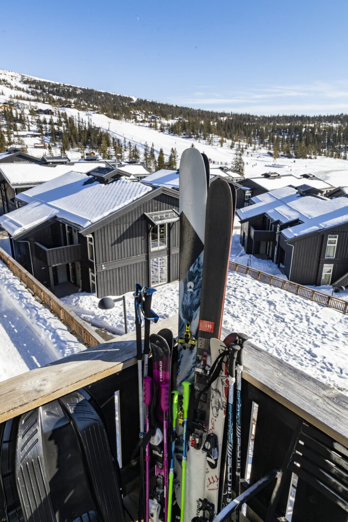 Vår 35 kvadratmeter stora lägenhet hade allt man kan tänkas behöva, med undantag för två saker. Det ena är en mikrovågsugn. En sådan är ju ändå ganska skön att ha om man förberett maten hemma, så som vi hade gjort. Nu fick spisen jobba desto hårdare. Den andra är ett skidförvaringsrum. Enligt vår granne så fanns det i närheten av skidshopen, men dessa fick man hyra. Vi löste det genom att ta skidorna och stavarna genom hallen och det kombinerade köket och vardagsrummet ut till balkongen.