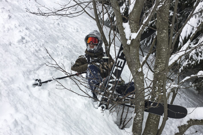 Men det dröjer inte länge förrän vår tidigare överenskommelse är som bortblåst. En av oss tomahawkar redan i första åket, tjugo minuter senare ligger en annan knappt synlig i en snödriva och en tredje kör rätt in i ett träd.