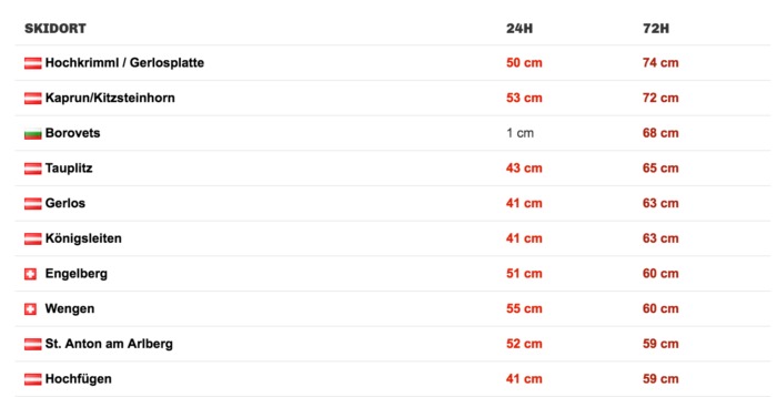 I norra delarna av alperna faller det desto mer snö. Lätt snöfall har fallit sedan i måndags i delar av Schweiz och Österrike och nu kommer de rejäla snöfallen. De primära snöfallen kommer under dagen och morgondagen medan fredag och lördagen ser ut att klarna upp. Grattis ni som har planerad skidåkning i Österrike dessa dagar.