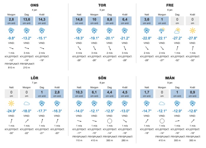 Snöprognoserna i Sverige är inte enorma men det är välbehövliga centimetrar som landar. Sveriges norra delar kan se upp emot 20 centimeter men snöfallet sträcker sig så långt ner som Götaland.
