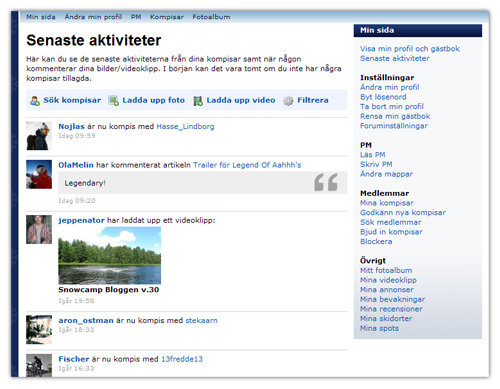 Freeride lanserar nu sin nya funktion Senaste Aktiviteter. Funktionen är inspirerad av Facebook och med hjälp av Senaste Aktiviteter ska man enklare kunna följa sina kompisars aktiviteter på Freeride som till exempel kommentarer på artiklar, bilder, videoklipp, uppladdade bilder och filmer.