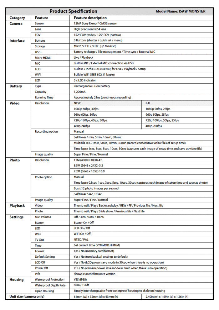 På utsidan påminner iSaw Extreme mycket om konkurrenten GoPros kameror och man har lyckats få in tunga specifikationer i den lilla kameran. Bland annat 60 fps i 1080-upplösning, WiFi och en lins med ljusstyrka f/2,4. Dessutom har den en inbyggd LCD-skärm på baksidan, så du kan kolla på dina klipp och bilder direkt efter att du filmat dem.