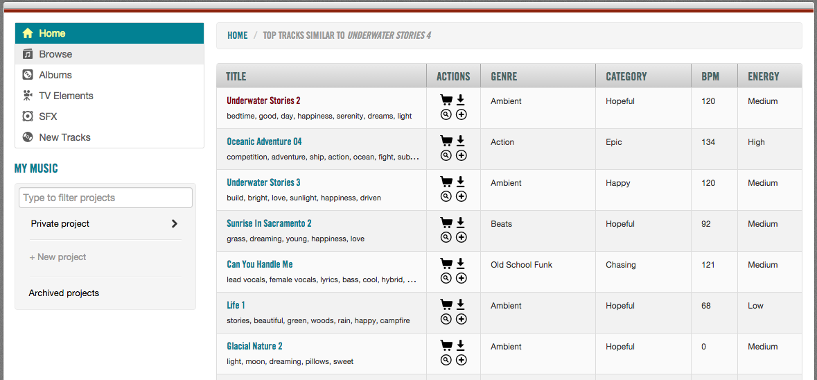 Ljudeffekter, musik och vinjetter välsorterade efter bland annat energinivå och BPM gör det enkelt att navigera och hitta den stämning du söker till ditt kommande mästerverk.