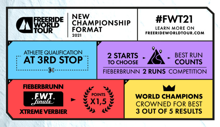 För att tydliggöra genomförandet av av Freeride World Tour 2021 ytterligare så listar vi nedan fyra nyckelpunkter som får representera vinterns nya uppdaterade upplägg: