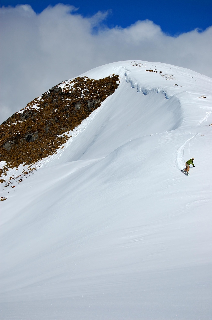 Treble Cone är området för offpiståkaren då de har en otroligt vacker miljö och många möjligheter att åka utanför pisten, snön på Nya Zeeland går dock inte att jämföra med de större puderorterna i världen.
