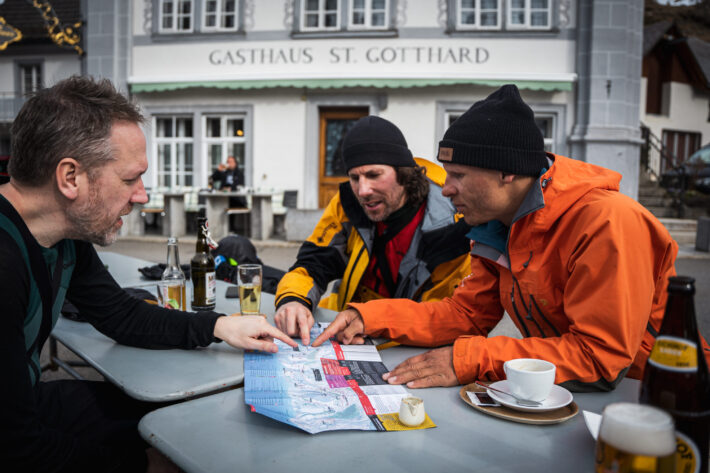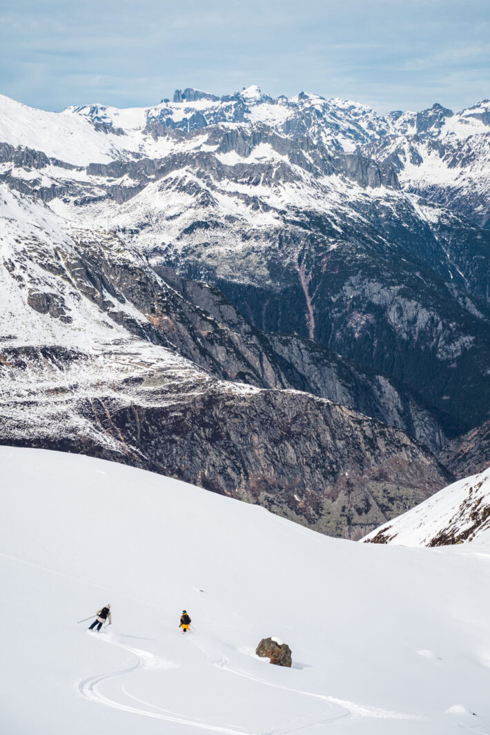 Stort, långt, cruisigt, oändligt vackert, mäktigt. Denna klassiska tur bjuder på en trevlig och lekfull terräng västerut mot Gotthard pass road som tar dig ner till Hospental. Du lämnar toppstationen bakom dig och tar dig an en lite brantare del söderut. Efter ungefär 250 fallhöjdsmeter behöver du ta du på stighudar och beger dig uppför i ungefär en halvtimme in i Gafallenlücke (eller ytterligare 20 minuter för att nå toppen av Rothorn).