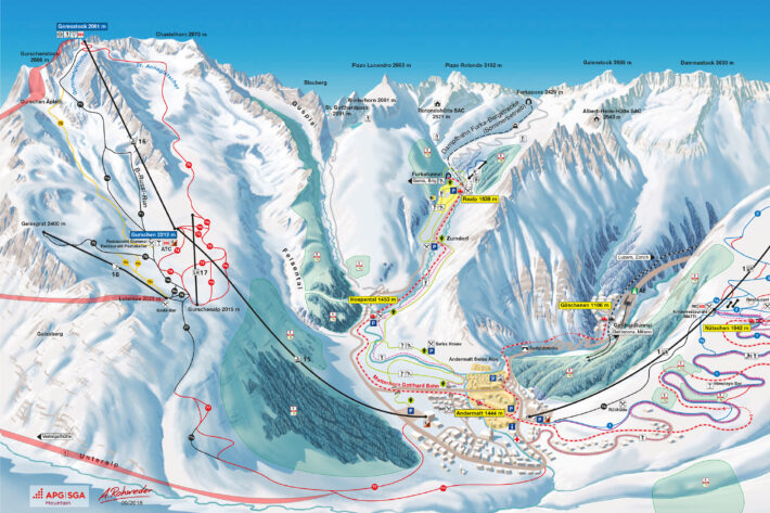 - SkiArena består av skidorterna Andermatt, Sedrun och Disentis.